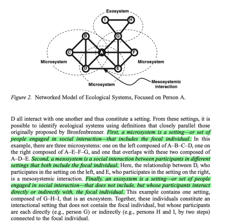 Neal, J. W., & Neal, Z. P. (2013). Nested or Networked? Future Directions for Ecological Systems Theory: Nested or Networked? Social Development, n/a-n/a. https://doi.org/10.1111/sode.12018